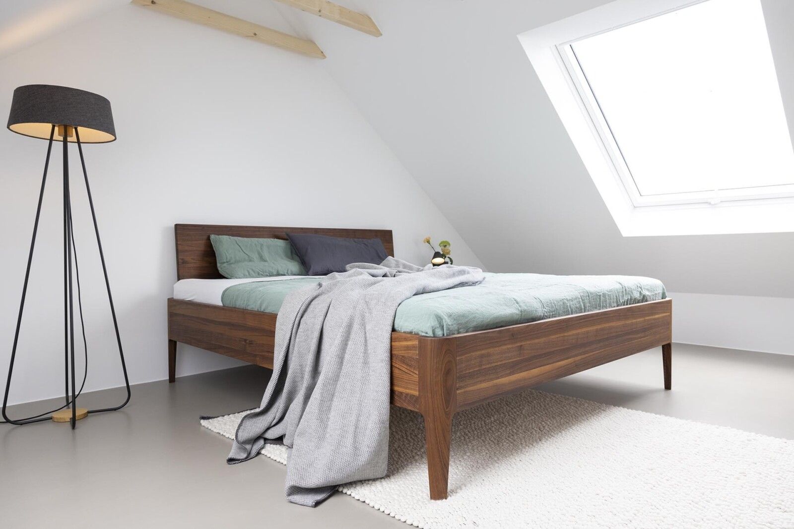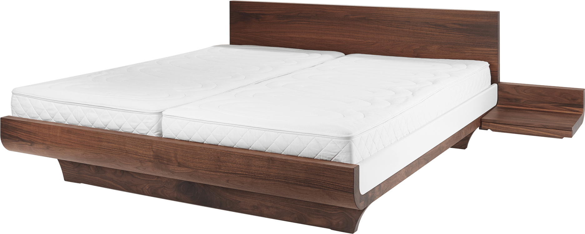 Der ausgeprägt dunkle Anblick des amerikanischen Nussbaums verleiht Bettgestellen Individualität und eine hohe Wertigkeit. Das Holz strahlt viel Wärme aus.